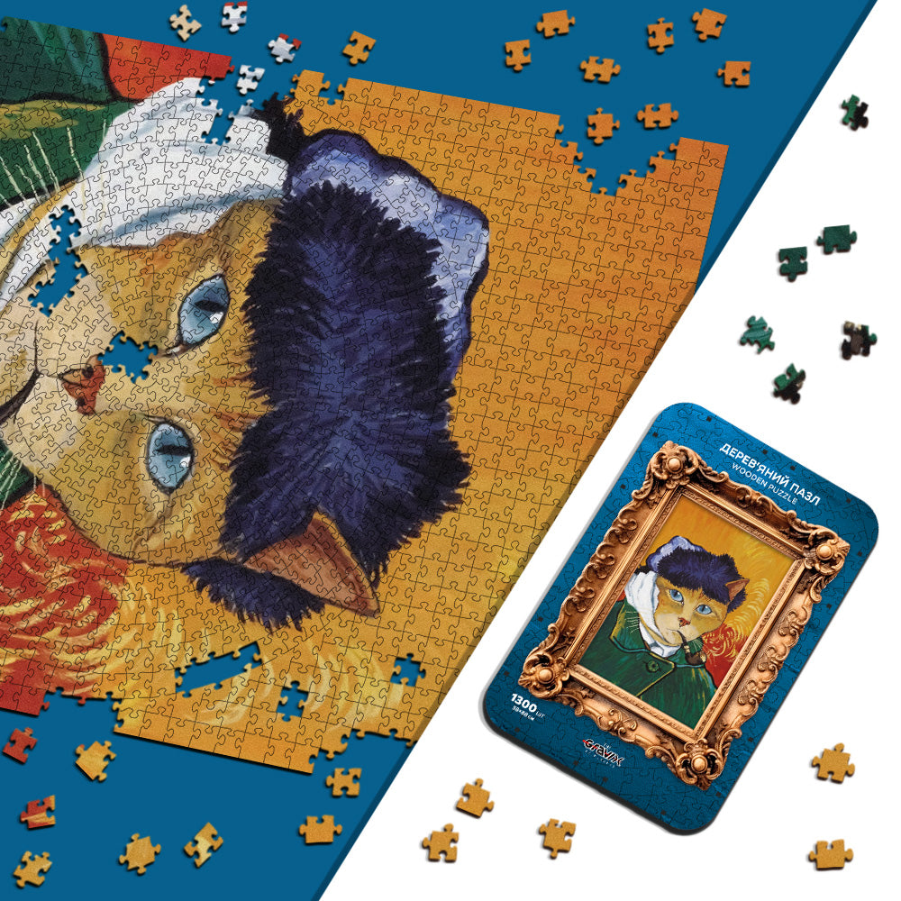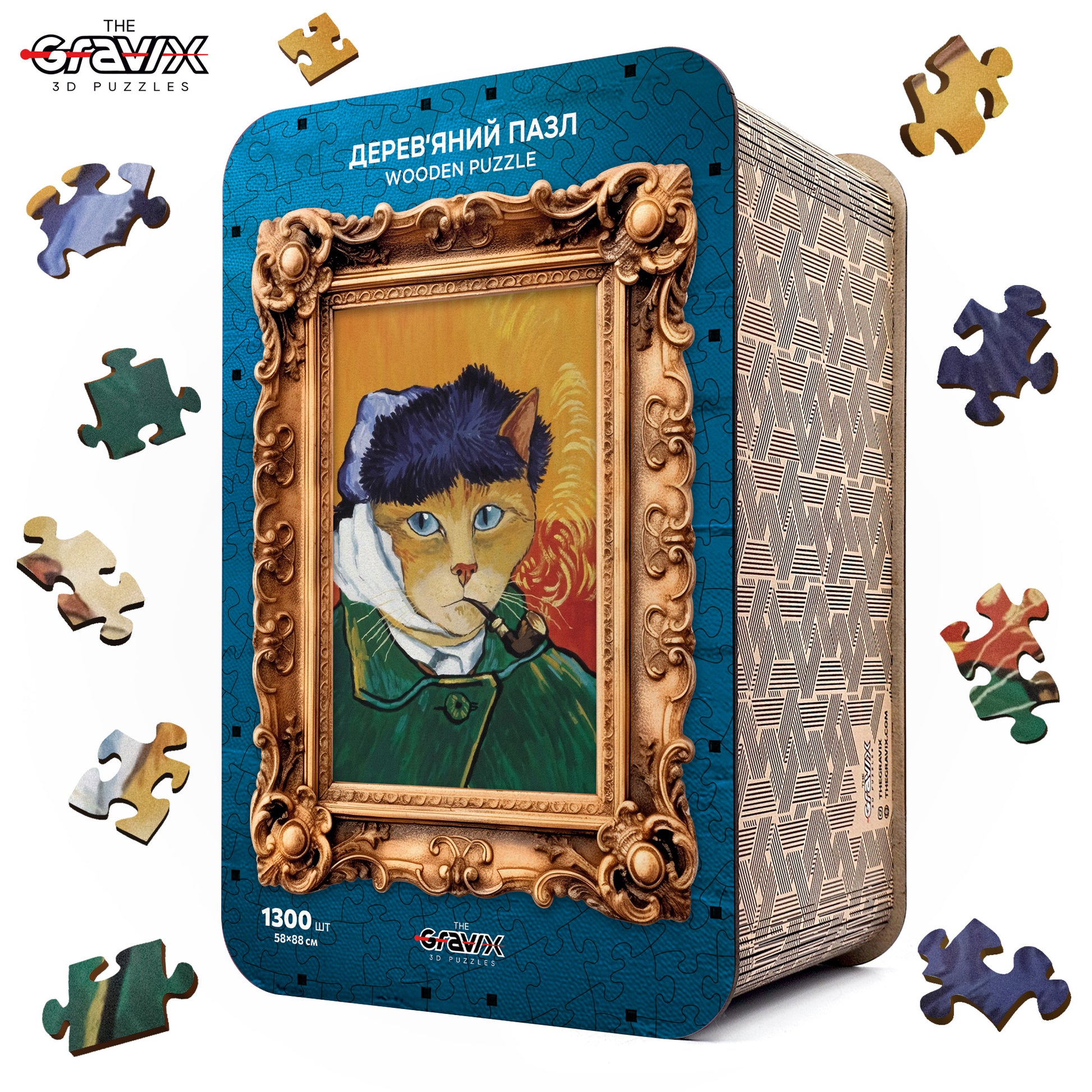 Drewniane Puzzle – „AUTOPORTRET KOTA W STYLU VAN GOGHA”