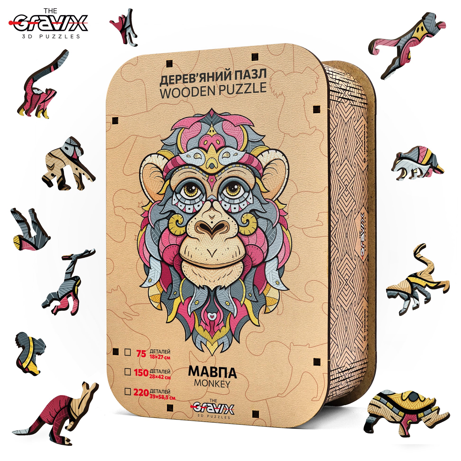 Drewniane Puzzle Figuralne – „MAŁPA”