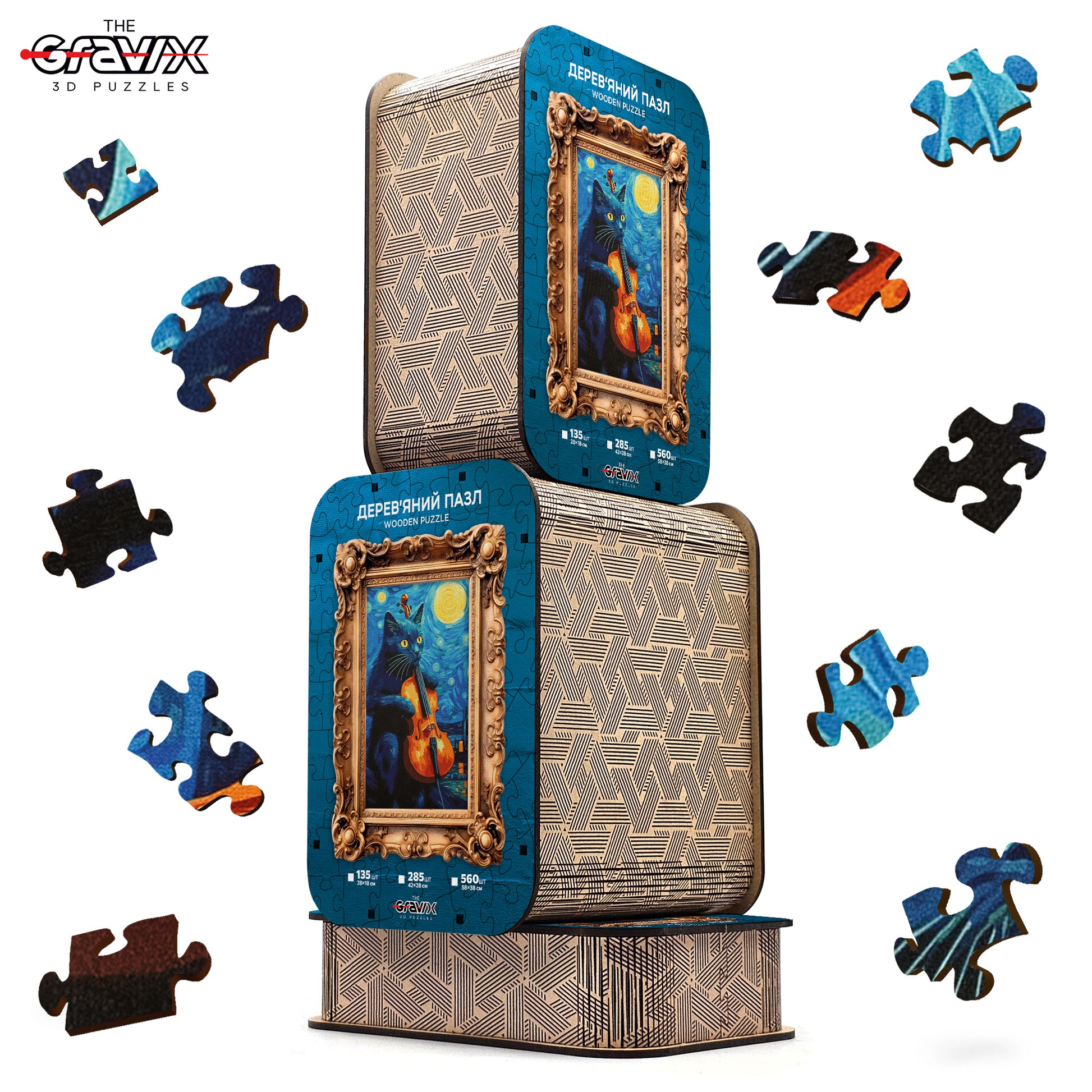 Drewniane Puzzle – „GWIAŹDZISTA NOC I KOT SKRZYPEK”