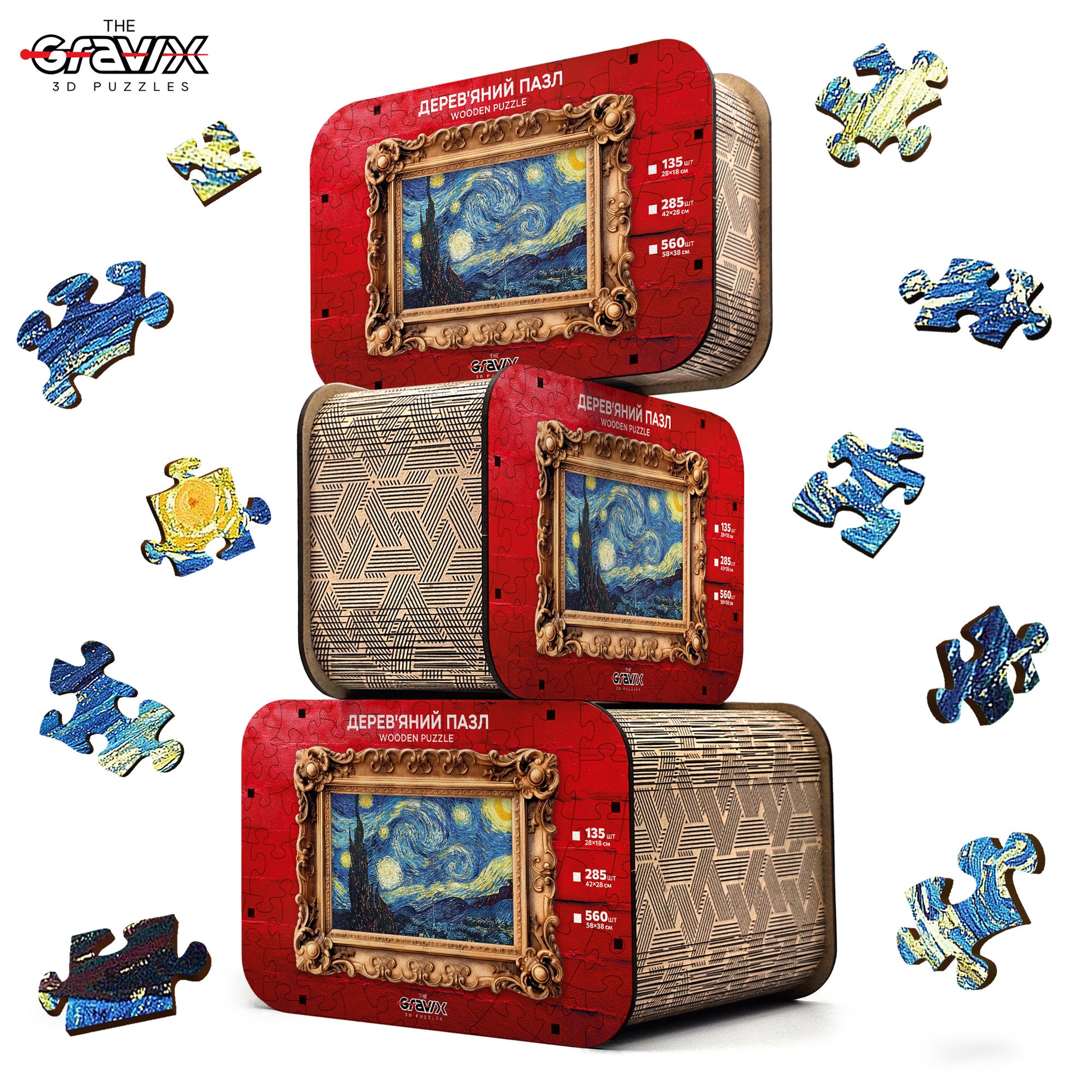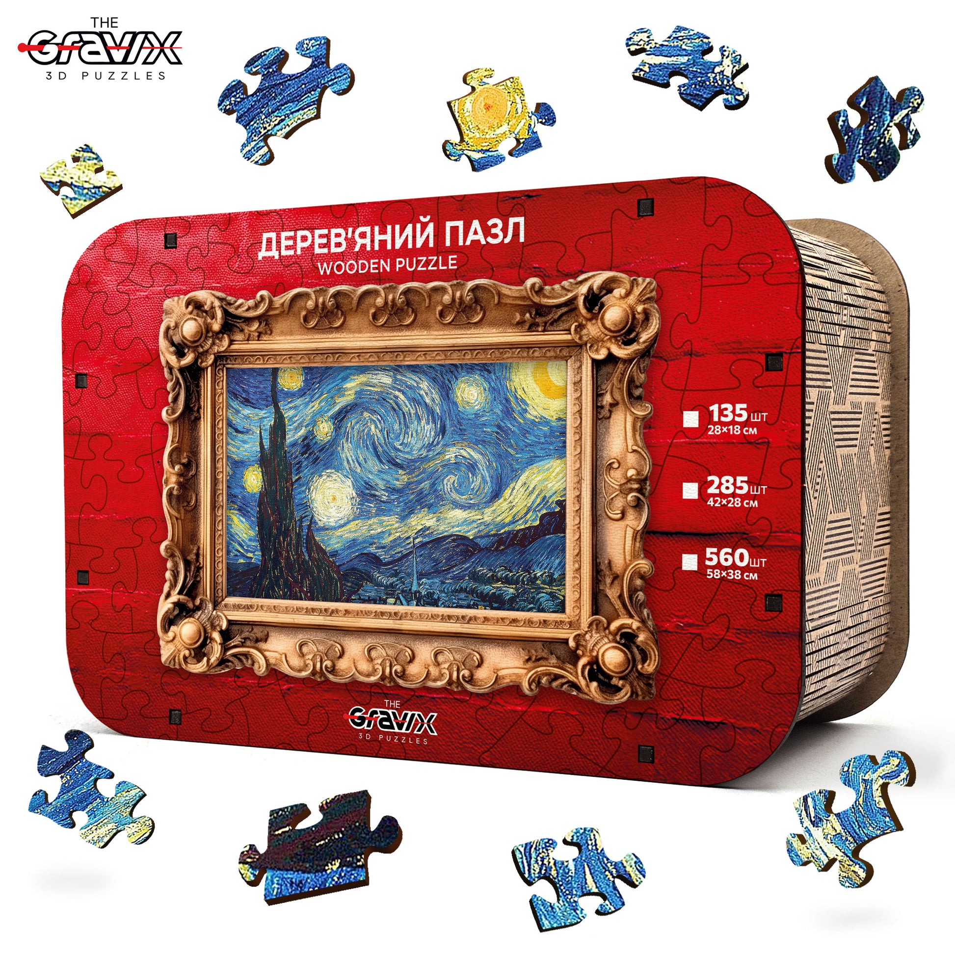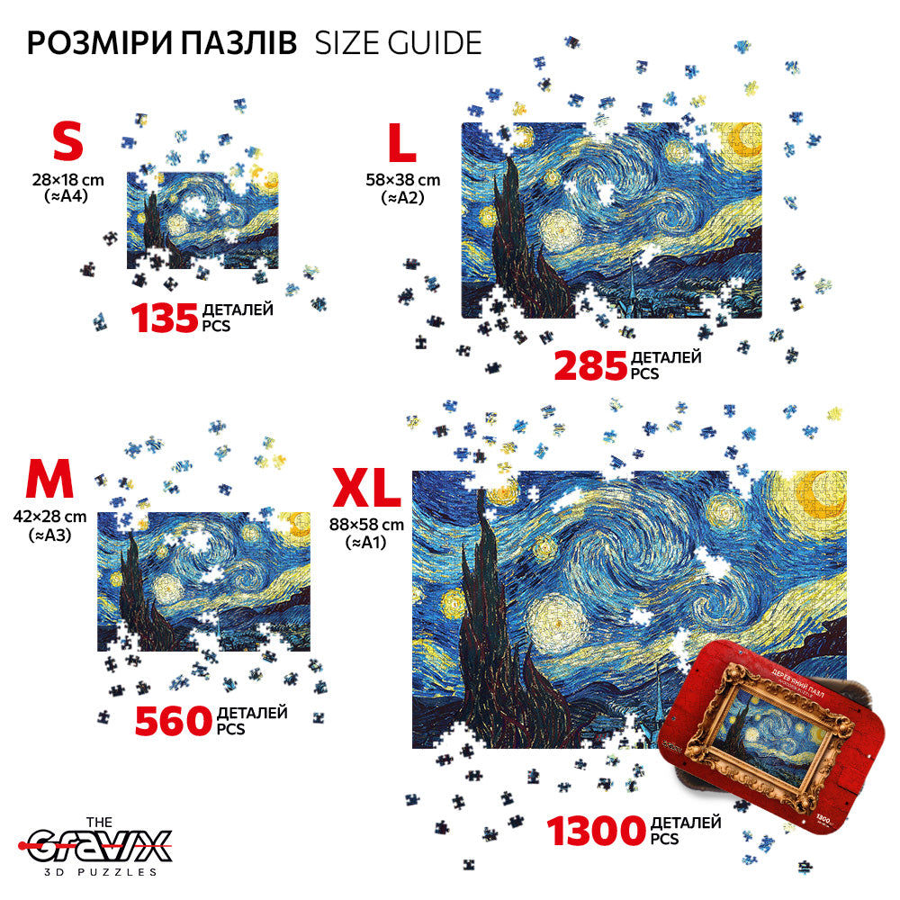 Przed Tobą jedno z najsłynniejszych dzieł w historii sztuki – „Gwiaździsta noc” Vincenta van Gogha – teraz w formie wyjątkowych drewnianych puzzli 3D.