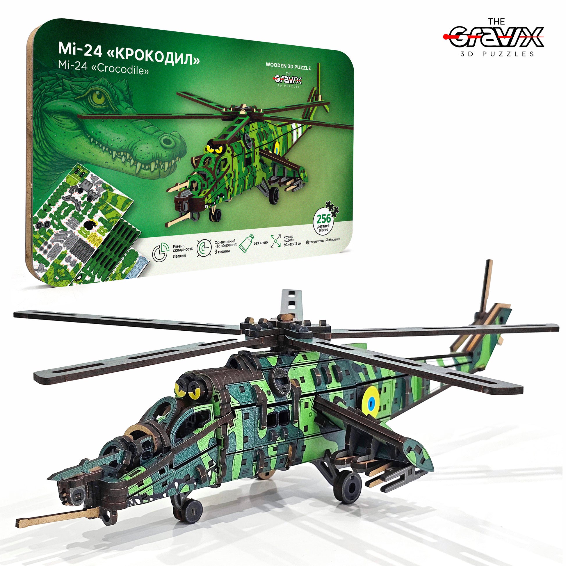 Drewniany 3D Konstruktor Śmigłowiec „MI-24 KROKODYL”” – 256 części, 41 cm (04308)