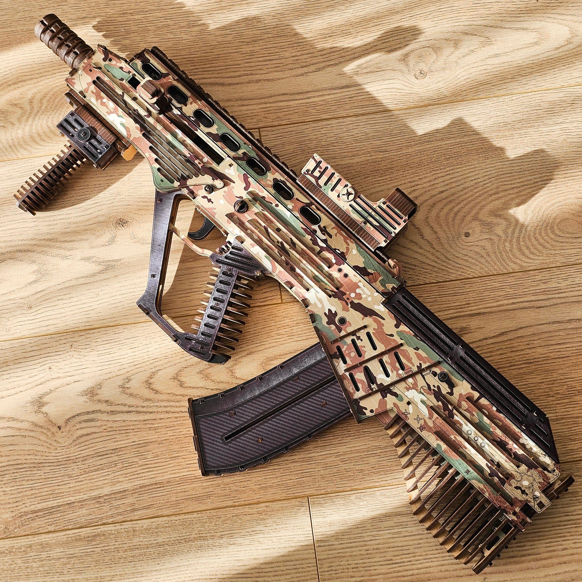 Drewniany 3D konstruktor „VULKAN-M – MALYUK” – karabin automatyczny (bullpup), 490 elementów, 70 cm